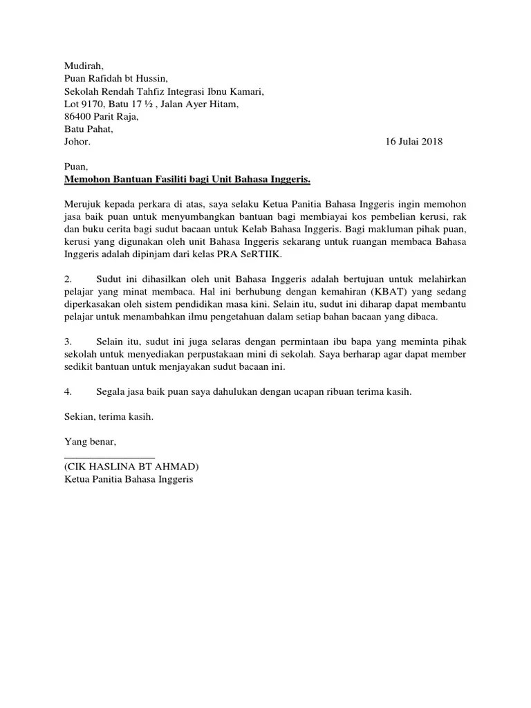Surat rasmi in bahasa inggeris. English discussion for form 5we are using malay as medium of communication.please like n subscribe.thanks for your kind support! Surat rasmi in english, surat rasmi individu, surat rasmi english, surat resmi indonesia baru, surat resmi . Contextual translation of surat rasmi bahasa inggeris into english. Surat tak rasmi bahasa inggeris. Read contoh karangan bahasa inggeris spm surat rasmi by dannyheega on issuu and browse thousands of other publications on our platform. Lala, polish, english, english 3x, prayer english. Format dan contoh surat rasmi upsr online. Related posts to contoh karangan . Format dan contoh surat rasmi. Contoh surat rasmi inggeris 15 contoh surat dalam bahasa inggris paling lengkap jika kita melihat perkembangan zaman dan kecanggihan . Karangan surat rasmi aduan lumba haram.